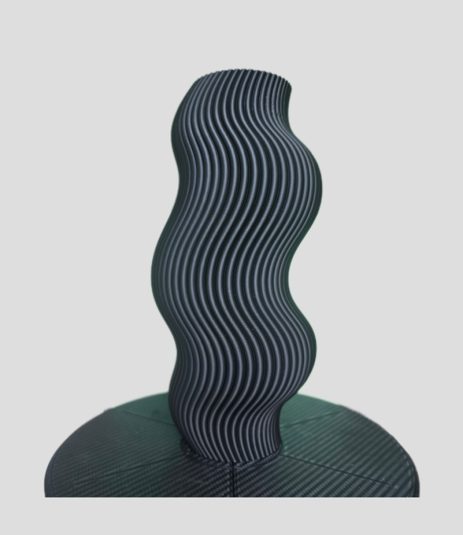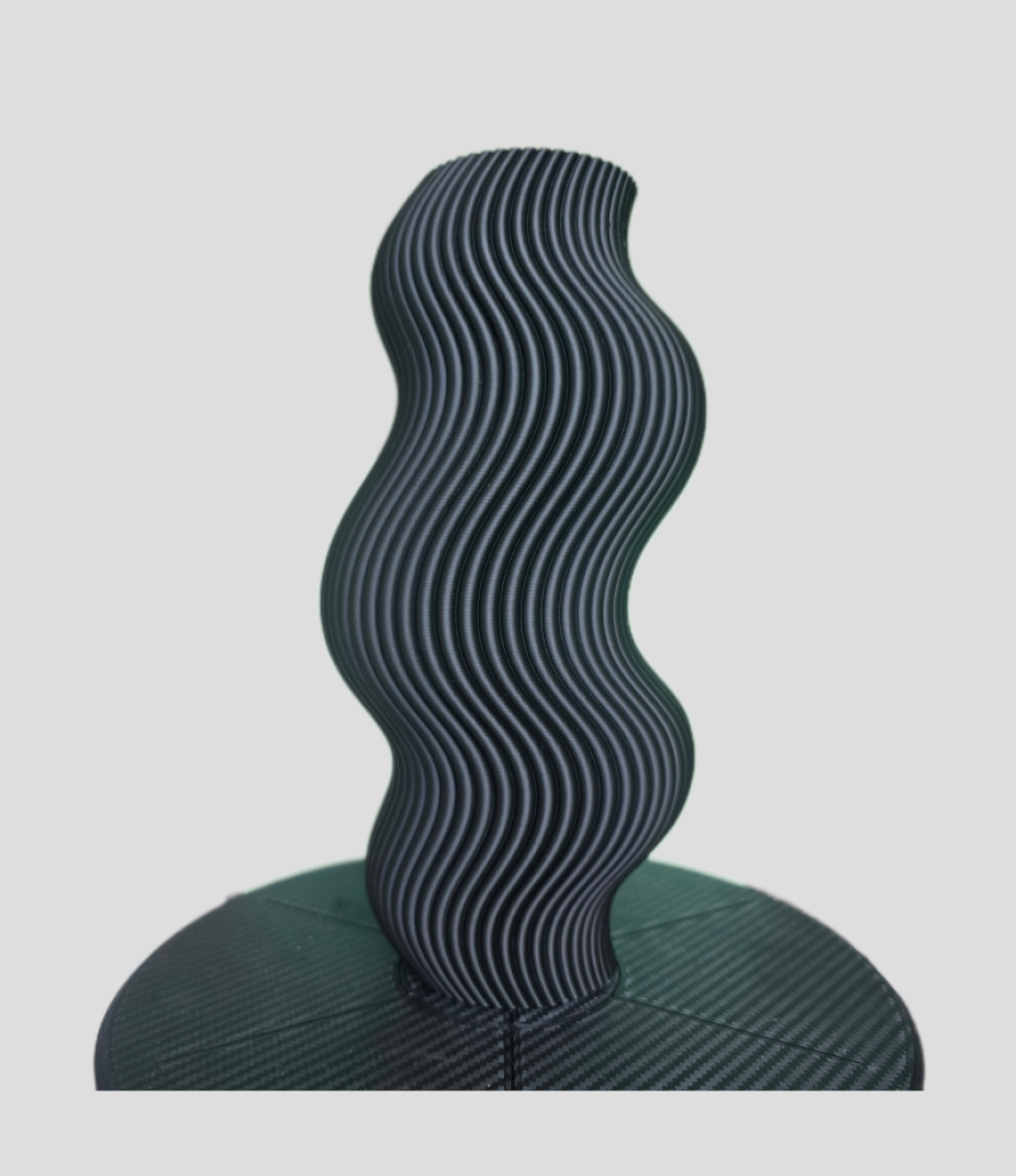 Съвременна ваза с изразителни вълнообразни линии, които създават усещане за плавност и хармония. Отличен избор за модерни пространства, където дизайнът и минимализмът вървят ръка за ръка.
